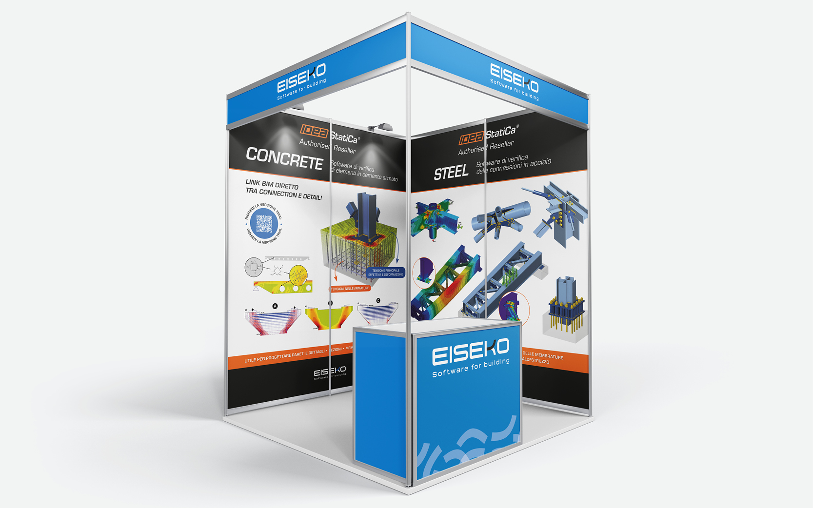 Per Eiseko, azienda leader nella fornitura di software e servizi per l’ingegneria, è stato sviluppato il concept grafico per l’allestimento dello stand in occasione di un importante evento fieristico.